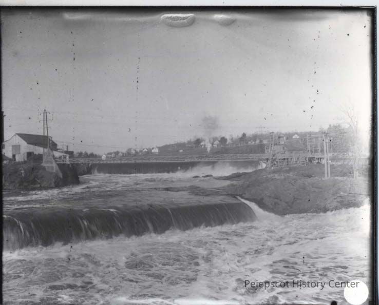 1923 Flood Freshet, Story Electric Power Plant, Suspension Bridge, Androscoggin River, Topsham, Brunswick