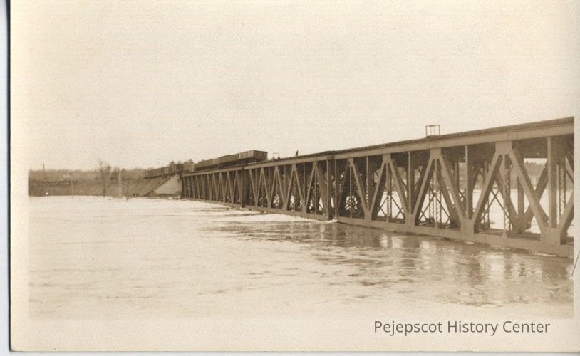 1936 Flood, Androscoggin River, Maine Central MCRR Bridge, Topsham, Brunswick, Flood 1936