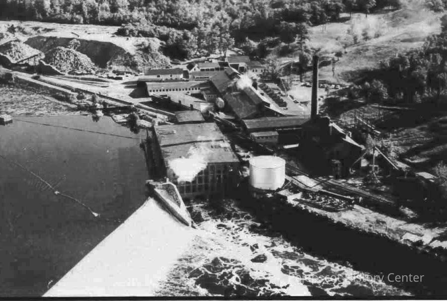 B/W photographic copy of the Pejepscot Paper Company Mill in the 1953 flood in Pejepscot, ME. 1953.Collection