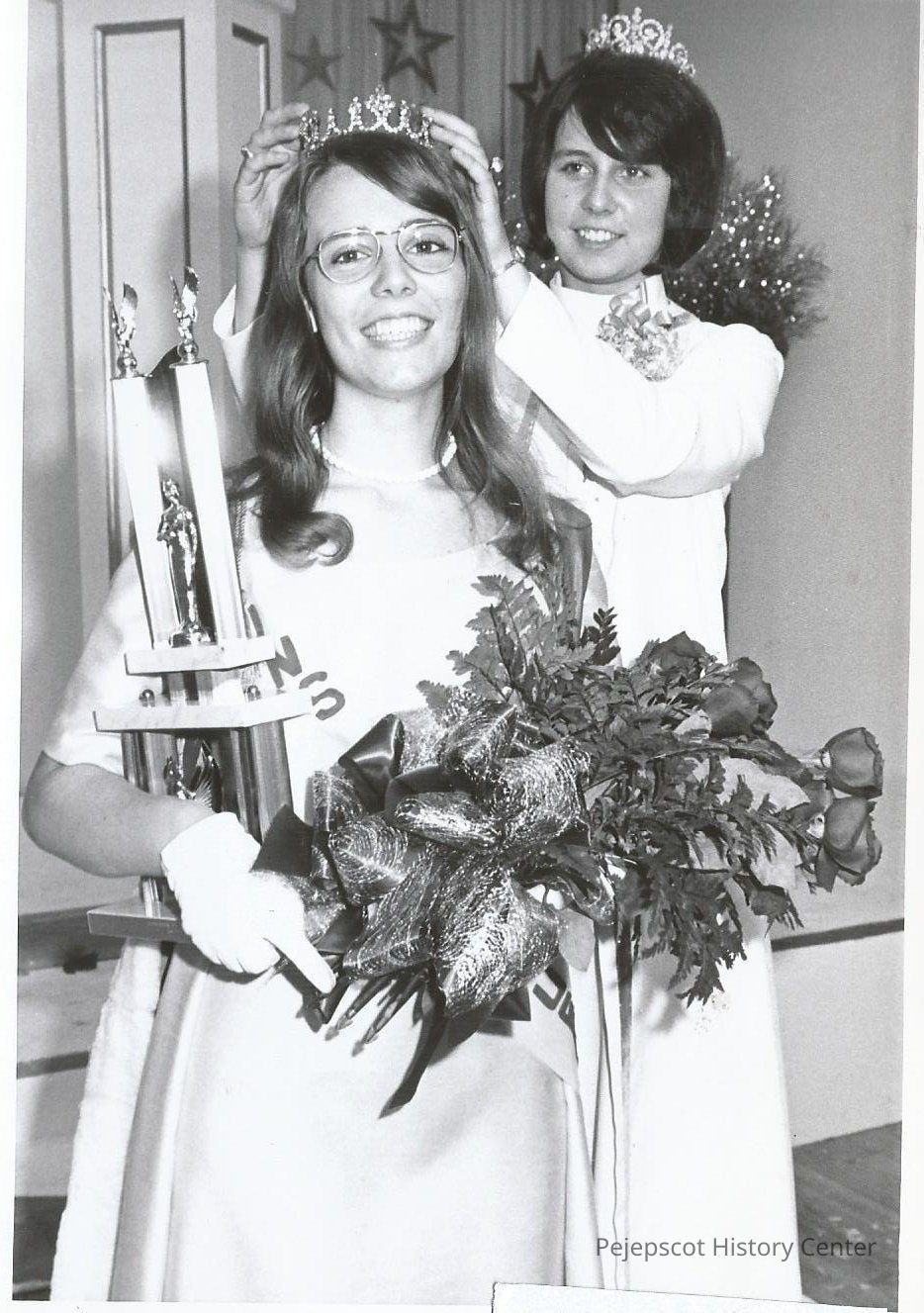 1971-72 Brunswick Teen Queen Doris Bernier crowning the 1972-73 Teen Queen Agnes Racine.