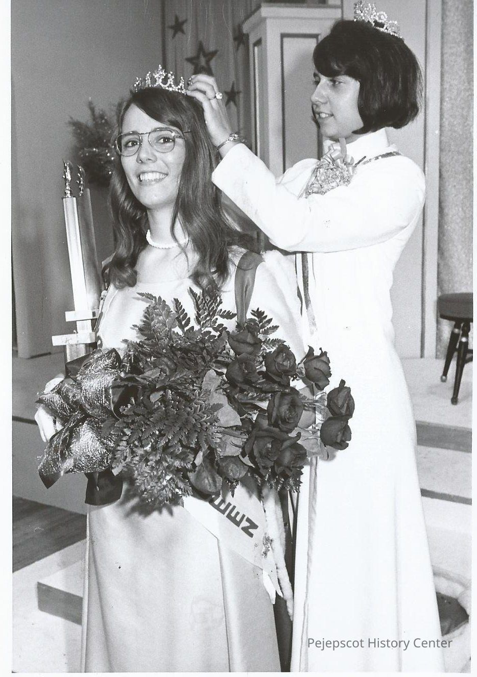 Photographer's # 3-17 1971-72 Brunswick Teen Queen Doris Bernier crowning the 1972-73 Teen Queen Agnes Racine.