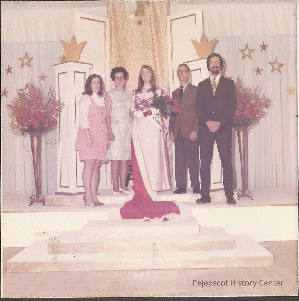 Photographer's # 3-6 Color photo 1972-73 Brunswick Teen Queen Agnes Racine and her family, Mr. & Mrs. Gerald Racine, sister Mary Ann and brother Gerald