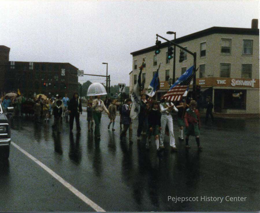 Girl Scouts, Girl Scouts - Brunswick, Girl Scout Association, Parades - Brunswick, Memorial Day, Memorial Day Parade 1985, Streets - Maine, Streets - Maine Street