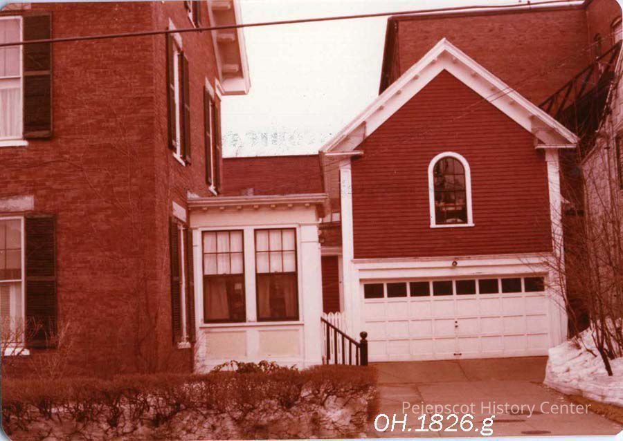 A color photograph of garage at 2 Lincoln Street, Brunswick, ME. Not dated.