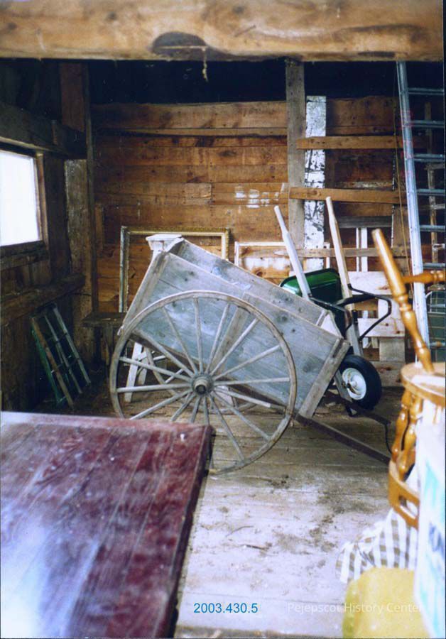 A color photograph taken about 2000 shows some of the interior of a barn at 24 Elm Street, Topsham, Maine. Photo is similar to 2003.430.2.