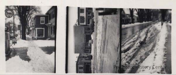 Three images of Maine Street and Park Row near Pleasant Street, Brunswick, Maine.