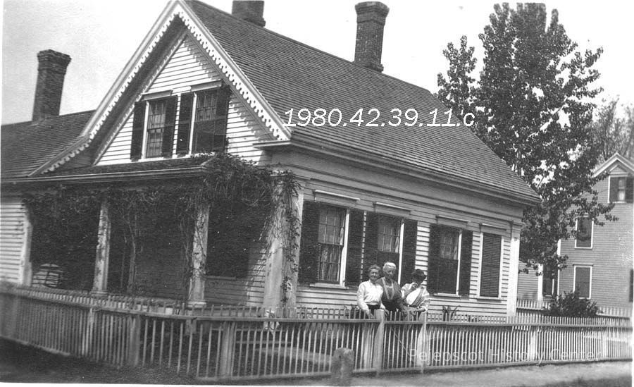 A B/W photograph of the house at 44 Harpswell Street. There are three people standing in front of the building.