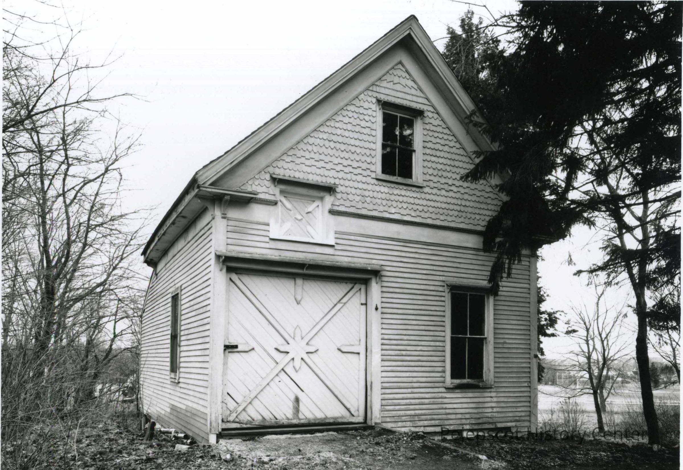 B/W photograph of the garage at 499 Ocean Avenue, Portland. Joshua Lawrence Chamberlain lived here later in his life. Undated.