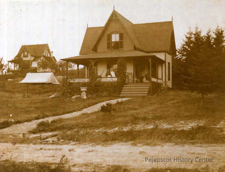 B/W photo of 68 East Marginal Road, Mere Point, Brunswick, ME. House in background is 93 Central Avenue, Mere Point. Undated.