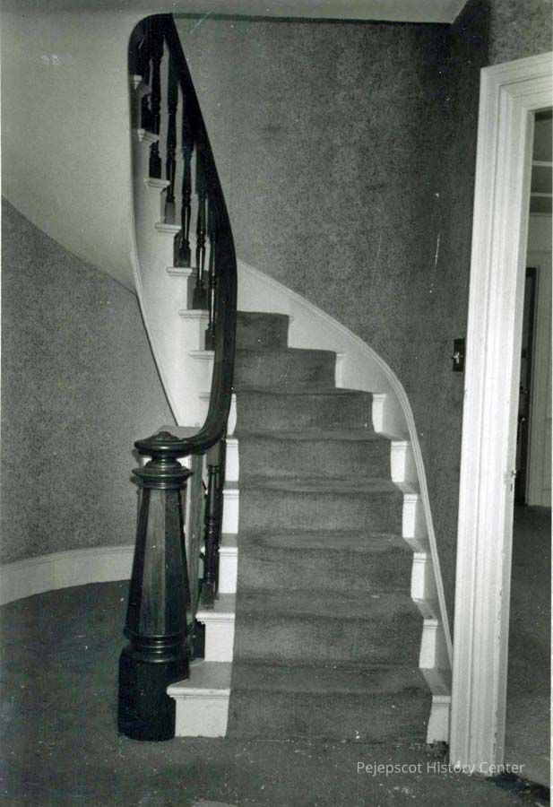 B/W photo of the staircase at 79 Federal Street, Brunswick, ME. 11/1986.
