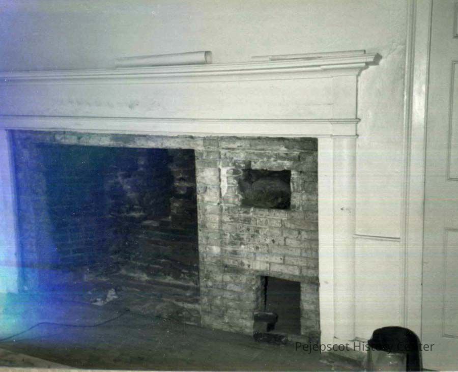 B/W photo of the fireplace in 79 Federal Street, under renovation. 11/1986.