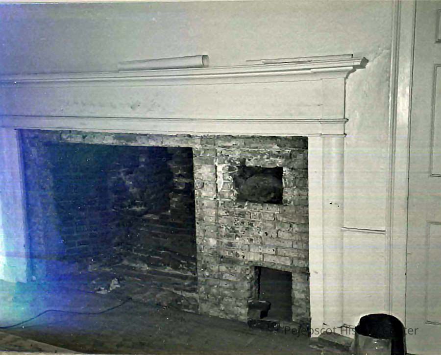 B/W photo of the fireplace in 79 Federal Street, under renovation. 11/1986.