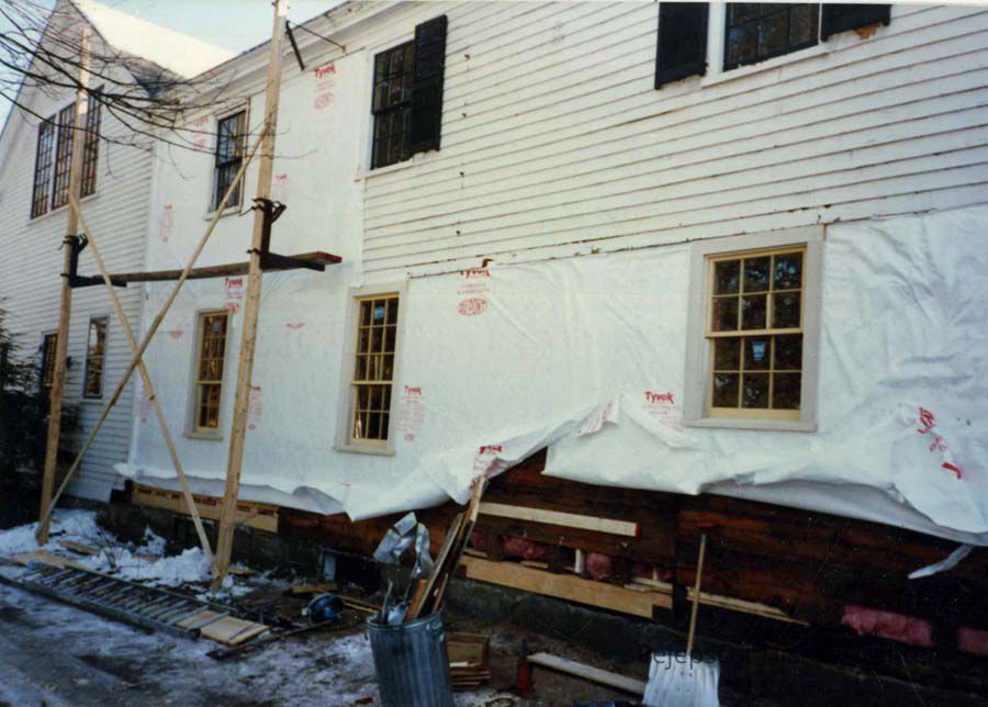 Color photo of repairs to the back of 79 Federal Street, Brunswick, ME. 11/1986.