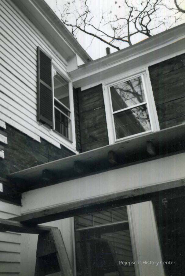 B/W photo of repair work at 79 Federal Street, Brunswick, ME. 11/1986.