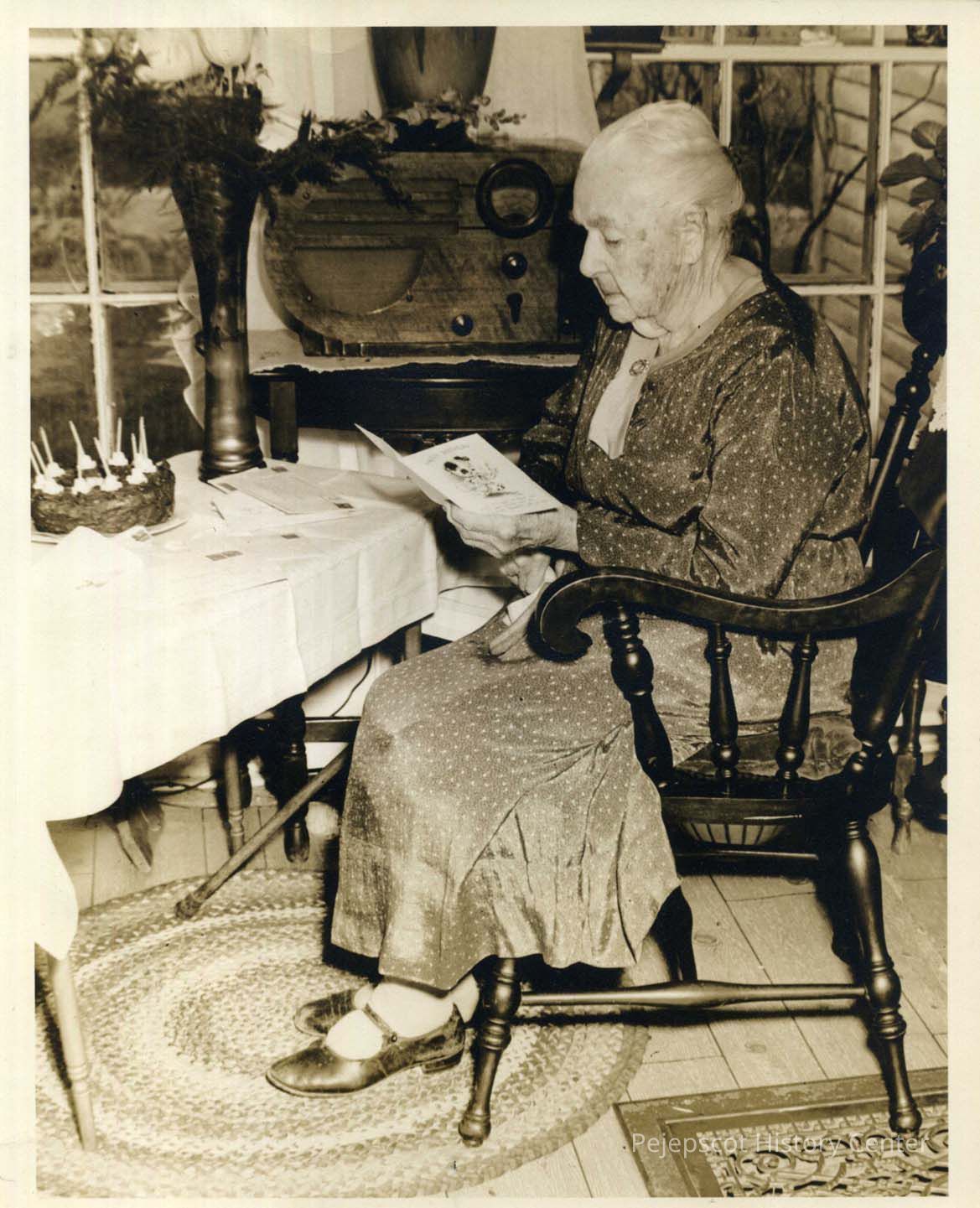 A picture of a 98 year old Topsham lady taken on her birthday in May, 1947.