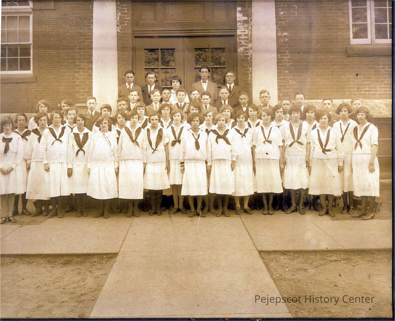 A B/W photograph of the 9th grade class of 1925 Hawthorne School, Brunswick, Maine. The names of those in the picture are written on the back.