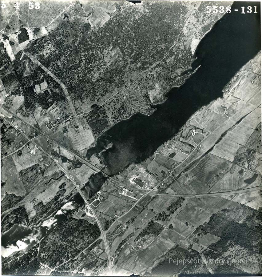 A B/W aerial photograph of an area New Meadows River.