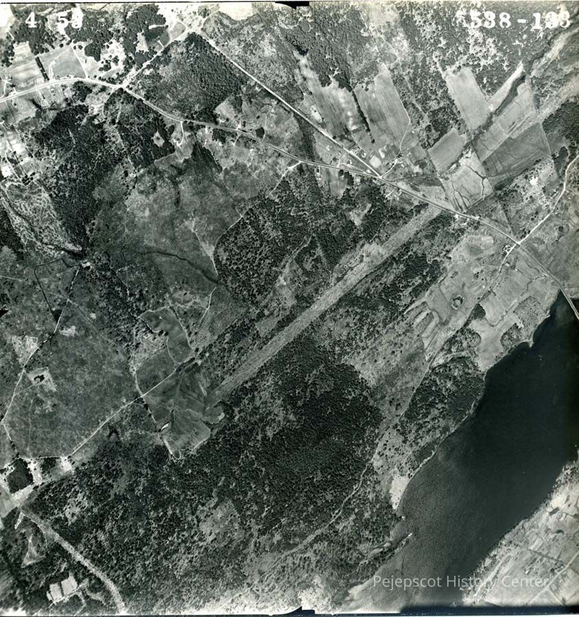 A B/W aerial photograph of an area New Meadows River.