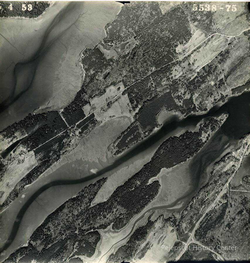 A B/W aerial photograph of the Doughty Cove area of Brunswick.