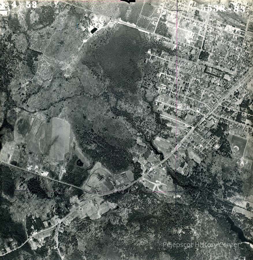 A B/W aerial photograph of the outskirts of Brunswick. 5/4/1953.