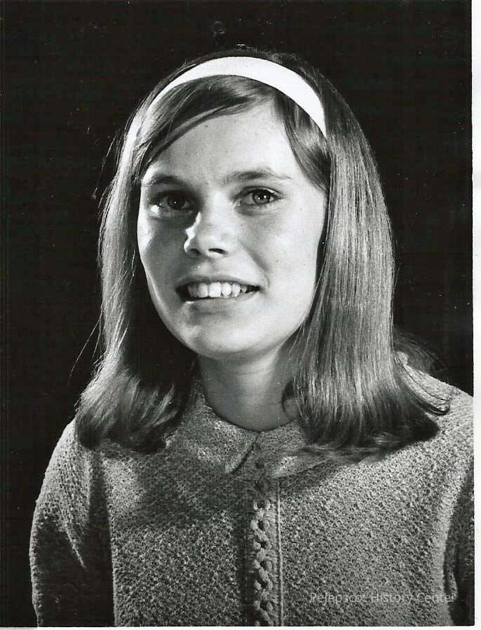 A B/W photograph of Elaine Menard, a contestant in the 1972 Miss Brunswick Teen-Queen Pageant.