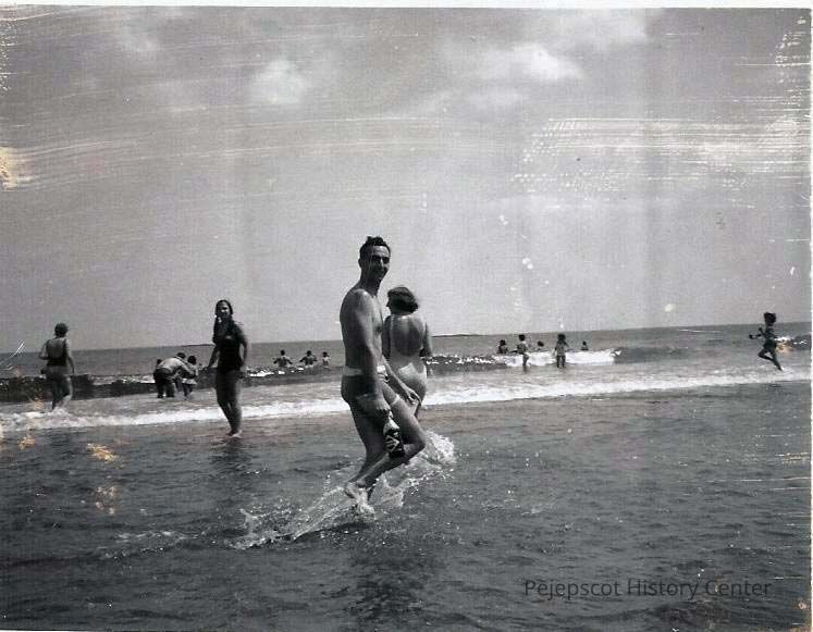 A B/W photograph of some people on a beach.