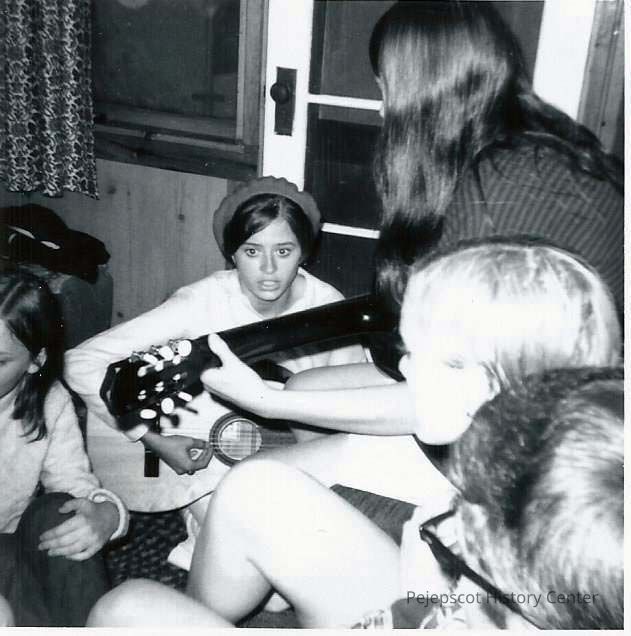 A B/W photograph of some young people singing.
