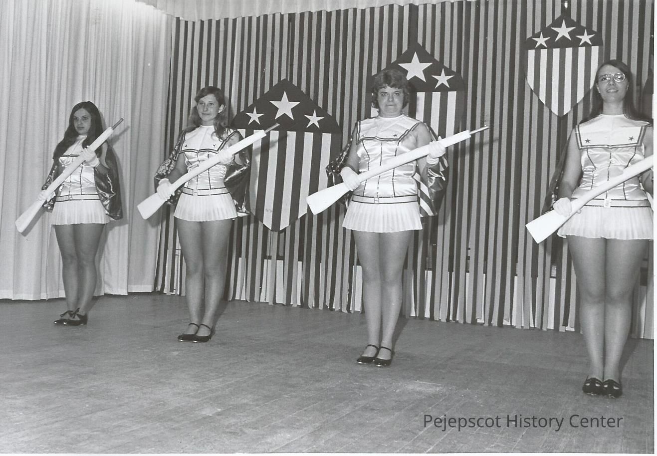 L. to R. C. Messier, N. Barton, I Bolduc and A. Racine performing routne in opening number to :Your a Grand Old Flag".