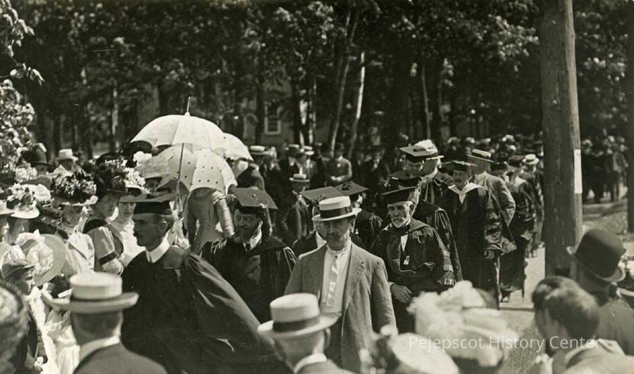 A B/W picture postcard of Bowdoin Commencement Procession. 10/1914