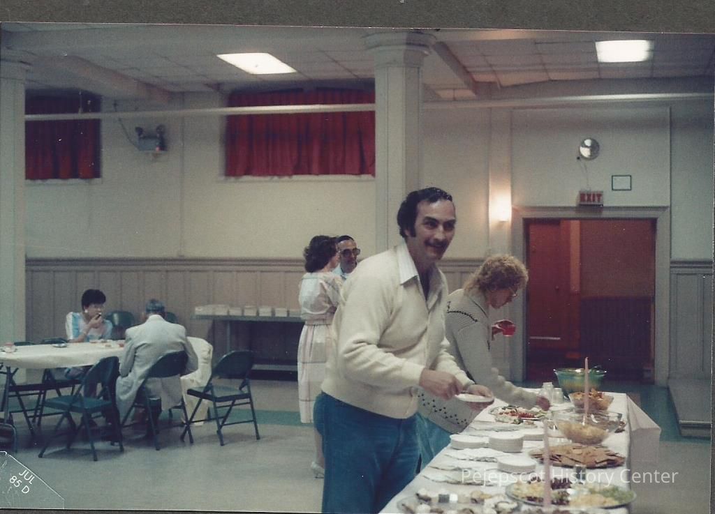 "Omer & Cherrie Gagne filling up plates at the buffet table. In he background Gene (Gagne) talking with Heidi Heintz. Beth Wentworth and grandfather Harold Warming.