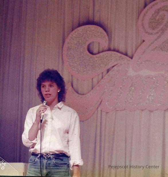 A color photograph of Vanessa Pierce Miss Brunswick Contestant singing for her talent presentation at dress rehearsal.