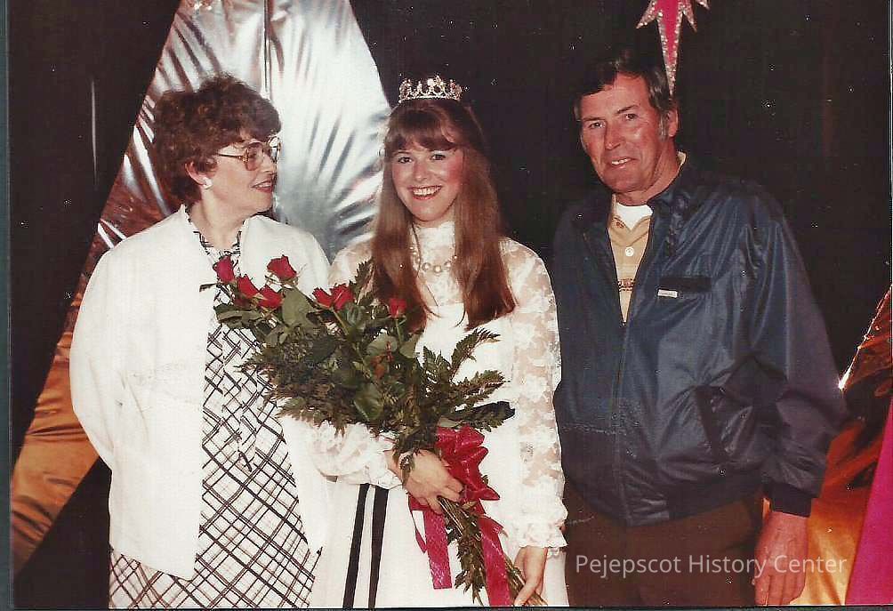 A color photograph of 1984-85 Brunswick Teen Queen Kelley Donovan with her parents