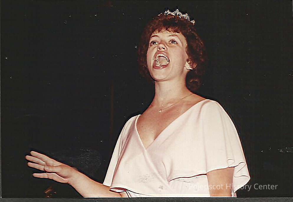 A color photograph of Sharon Hinckley singing a song from one of her favorate entertainers Liza Minelli, "New York New York." Photographer's # 8A