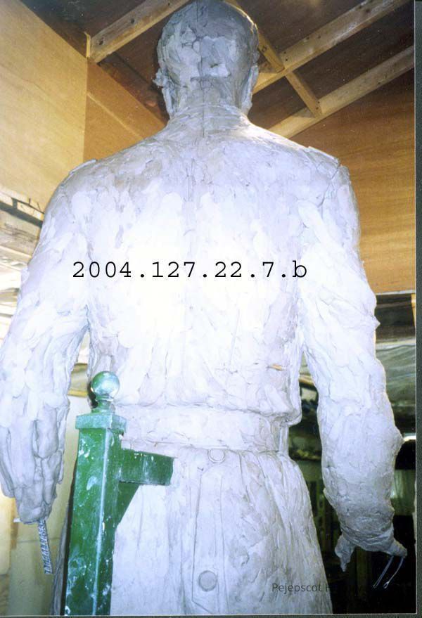 A color photograph of a back view of the Chamberlain statue. Negative is 2004.127.22.7.a in the Accessioned negative box 1