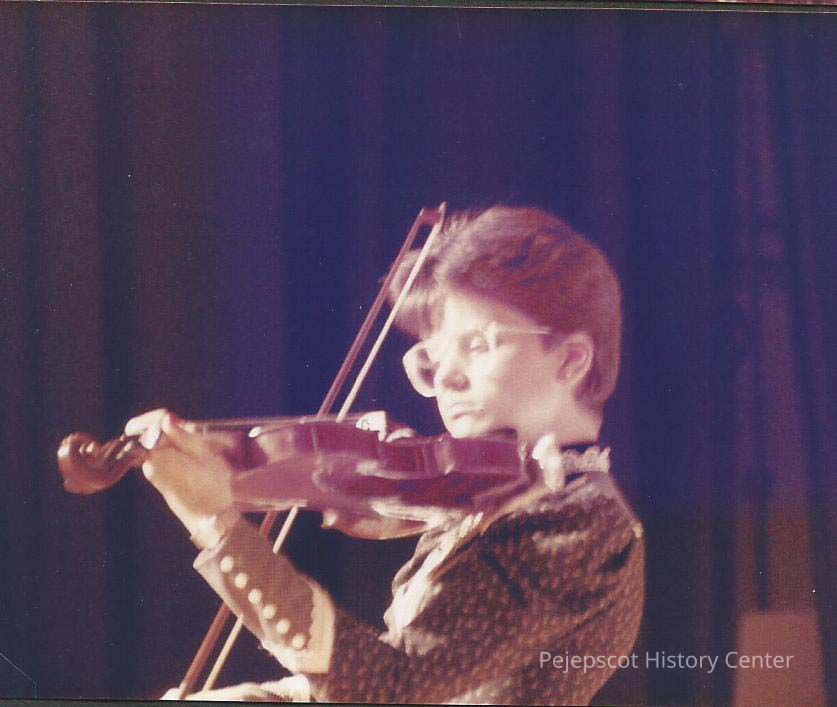 A color photograph of Beth Wentworth Teen Queen Contestant playing violin for talent presentation at dress rehearsal. photographer's # 1-16