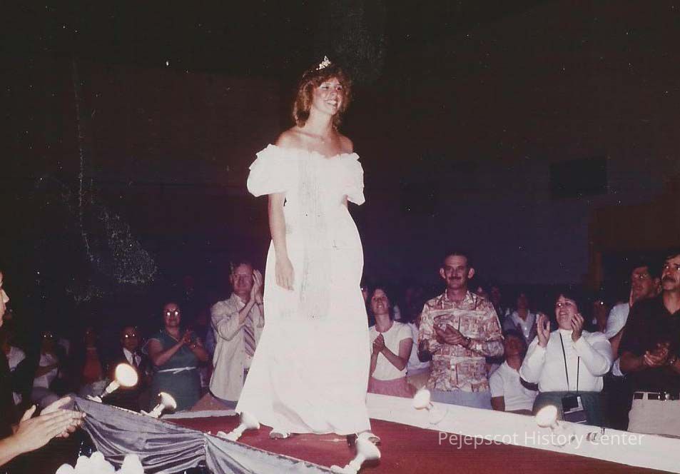 A color photograph of Brunswick Teen Queen 1982-83 Karen Coombs taking her final walk. Photographer's Number S-112