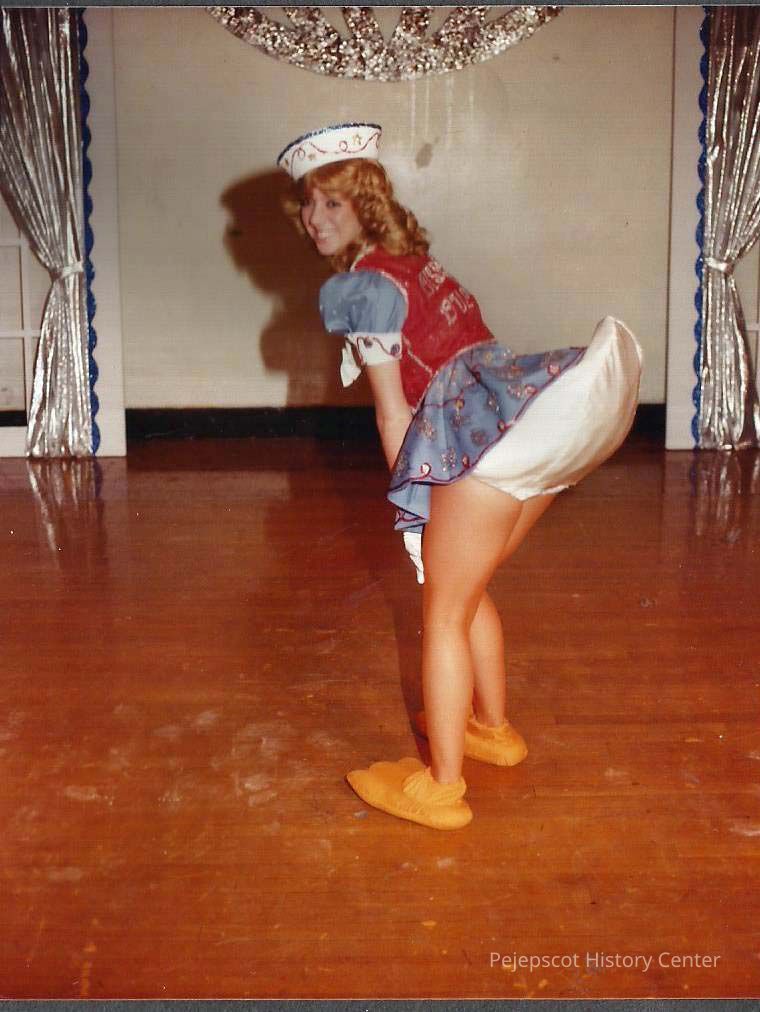 A color photograph of Collette Evrard contestant #5 is preforming an original dance to the song "Disco Duck". Photographer's Number 20
