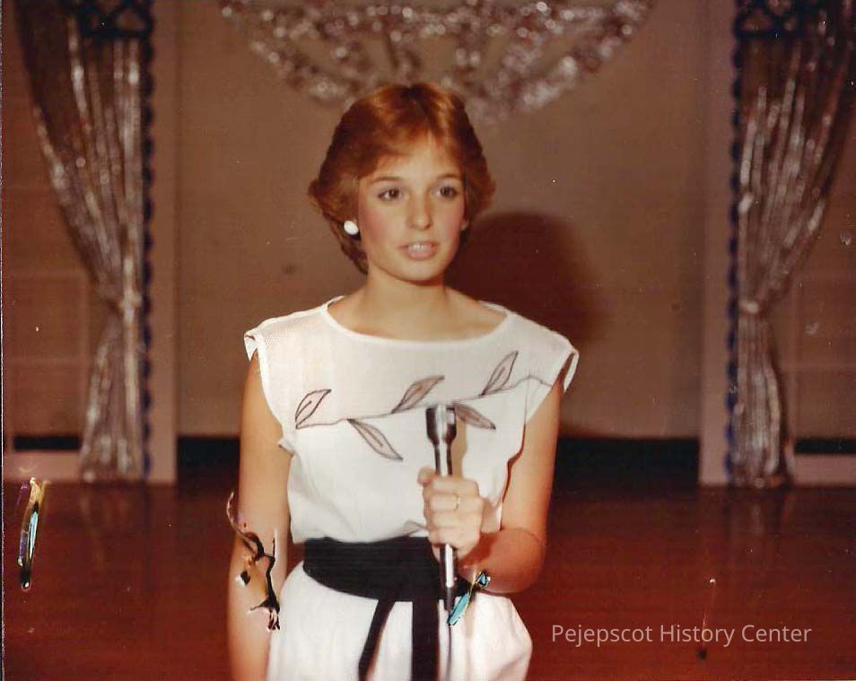 A color photograph of contestant #2 Kim Henderson singing "Hard For Me To Say I'm Sorry" for her talent presentation.