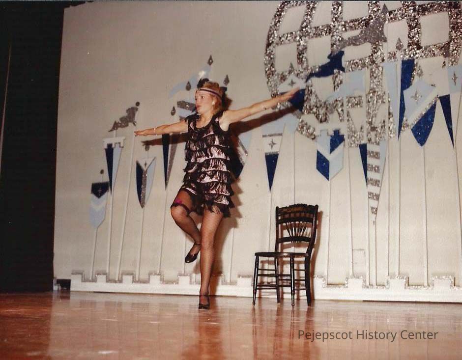 A color photograph of contestant #2 Wendy Brown performing an original dance to a medley of tunes from the Broadway Musical "Chicago".