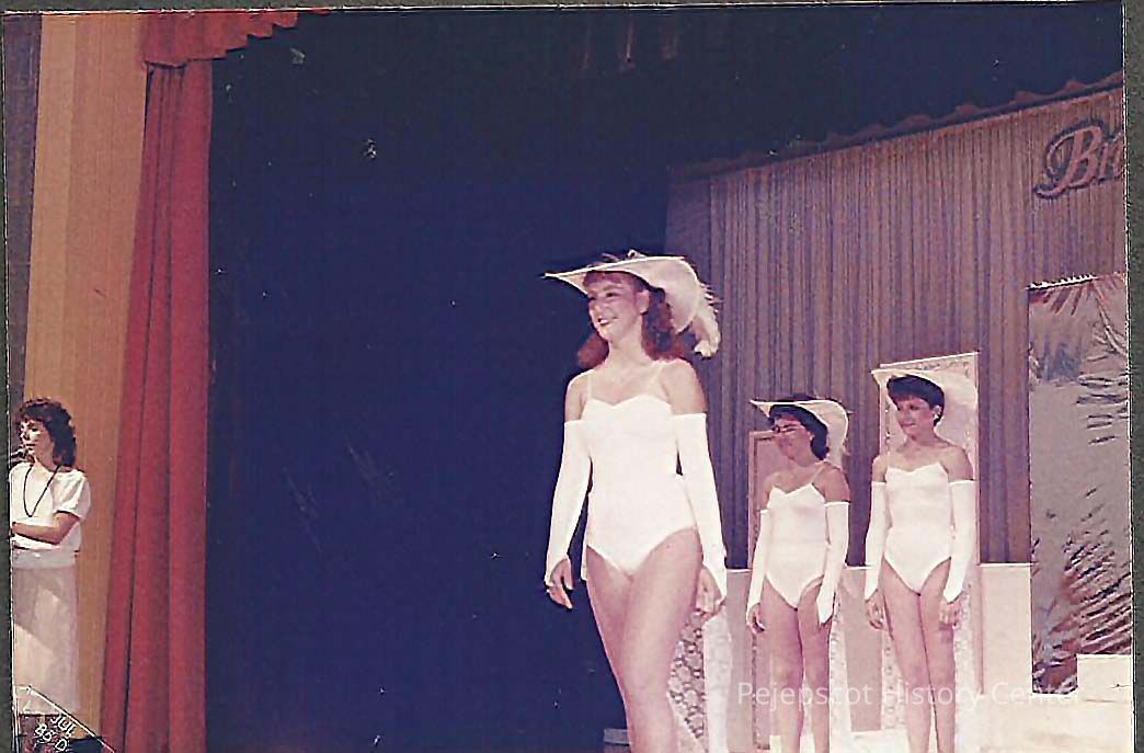 Sunday afternoon June 30,1985 Pre-judging of Costume A color photograph of Doreen Derosier Contestant #3 in costume.