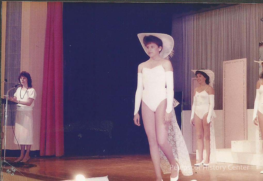 Sunday afternoon June 30,1985 Pre-judging of Costume A color photograph of Elizabeth Wentworth Contestant #2 in costume.