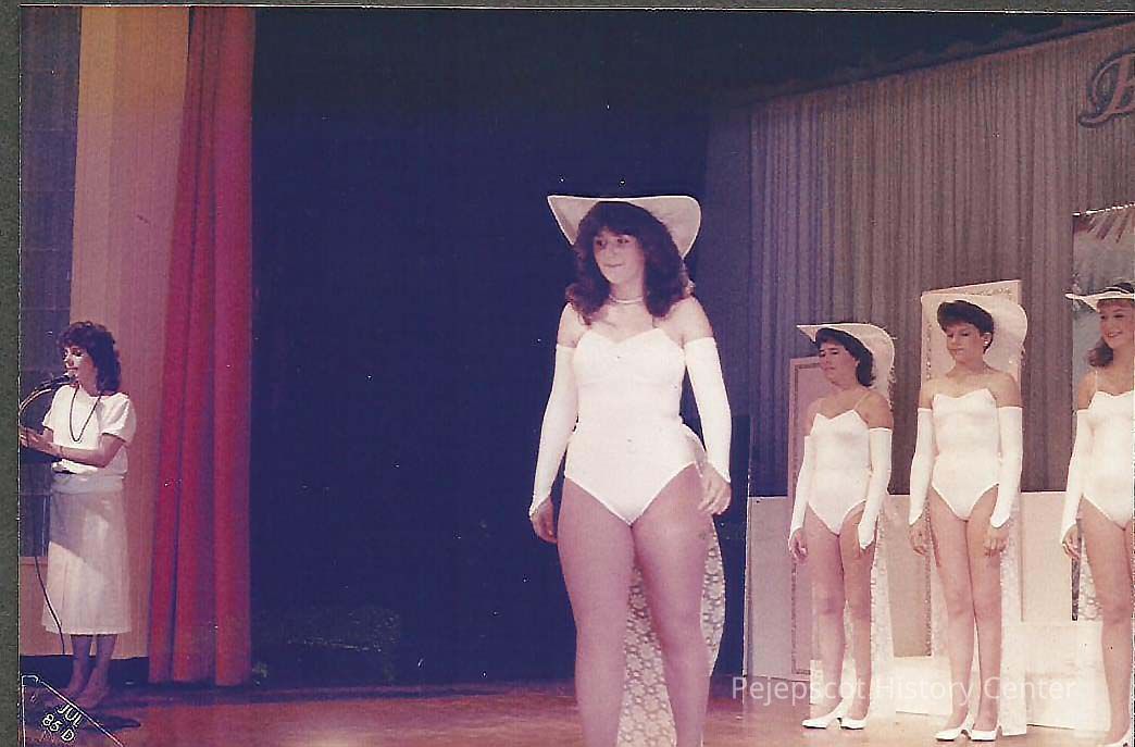Sunday afternoon June 30,1985 Pre-judging of Costume A color photograph of Heidi St. Pierre Contestant #4 in costume. Photographer's # 2-29