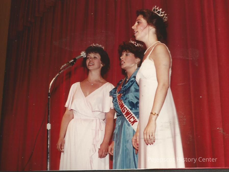 A color photograph of L. to R. Sharon Hinckley, Karen Coombs and Phyllis Glenn singing "Aquarius and Let the Sun Shine In" to open the talent competition.