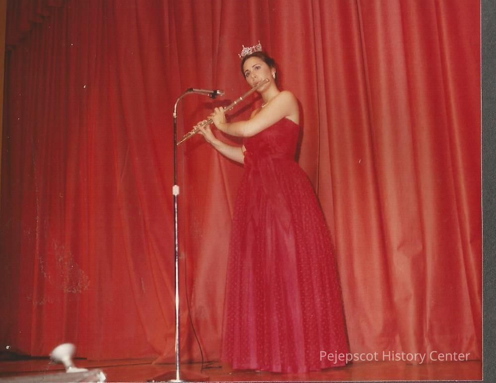 A color photograph of Miss Brunswick Kristi Kaknes who is playing the flute