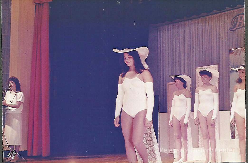 Sunday afternoon June 30,1985 Pre-judging of Costume A color photograph of Patty Pickard Contestant #5 in costume. Photographer's # 2-30
