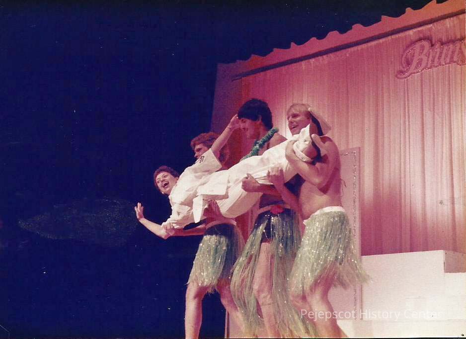 Miss Brunswick Talent Presentation A color photograph at the end of the song with Sharon being carried off by Bill Jacobs, Jeff Callaway and Bob Frizzle come in to do some Hawaiian dances.
