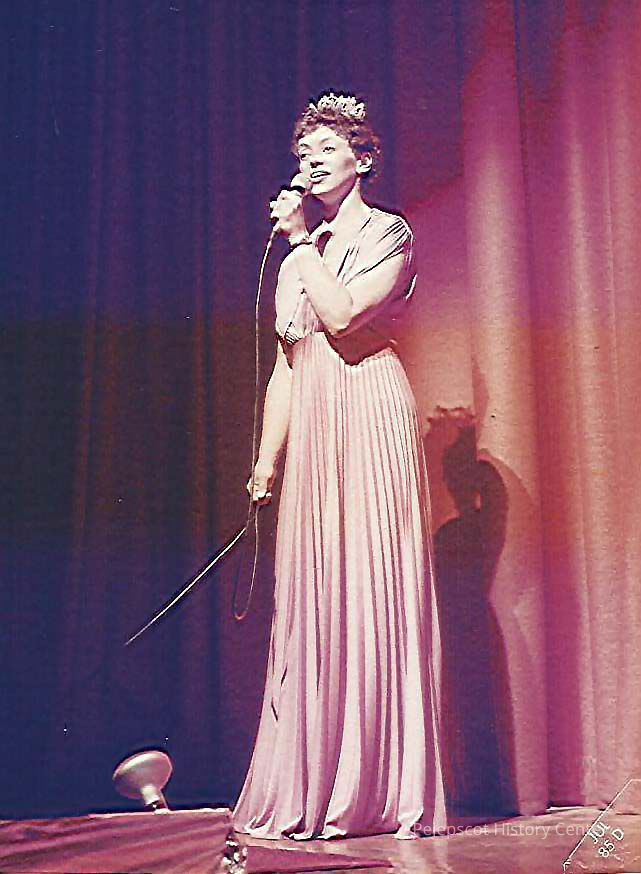 Teen Queen Question Competition A color photograph of Sharon Hinckley singing, "My Man" for a fill in number.