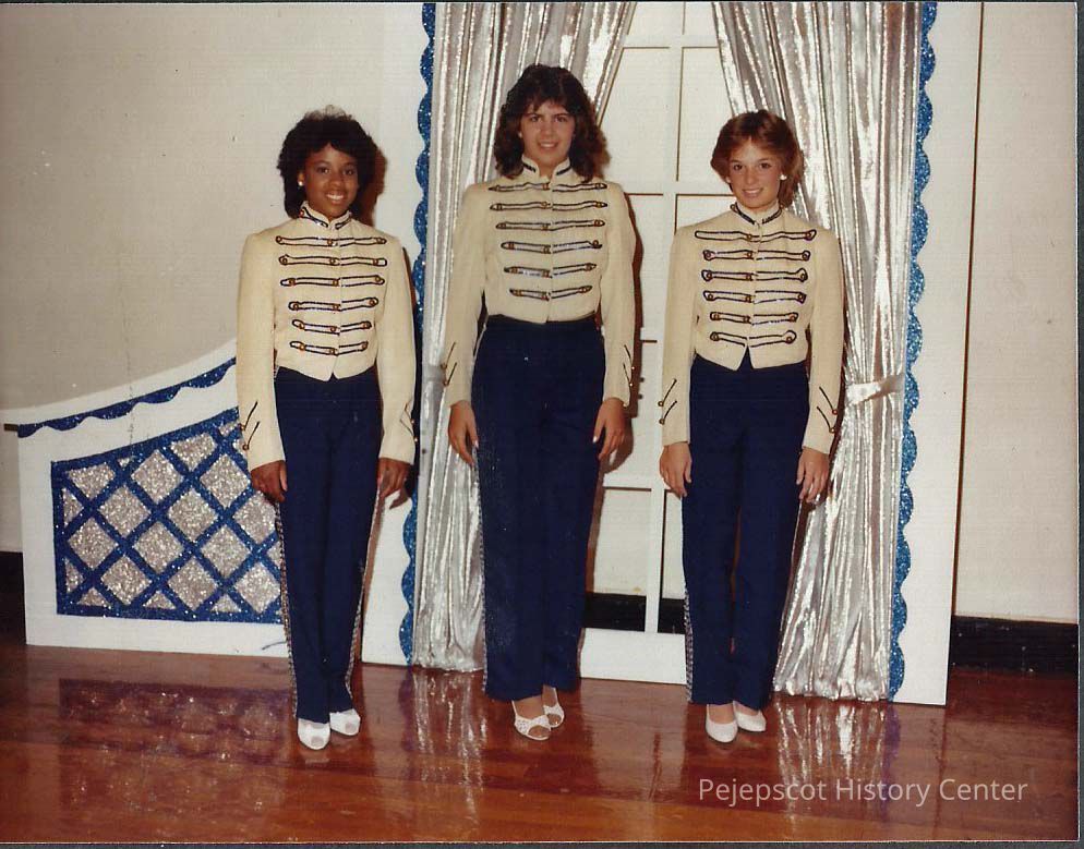 A color photograph of the Teen Queen contestants posing in there costumes. They are L. to R. Kim Carslick, Patricia Stuart and Kim Handerson.