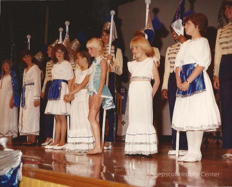 A color photograph of Terri Cook, "Tinkerbelle" being introduced to the audiance by Sharon Hinckley Mistress of Ceremonies.