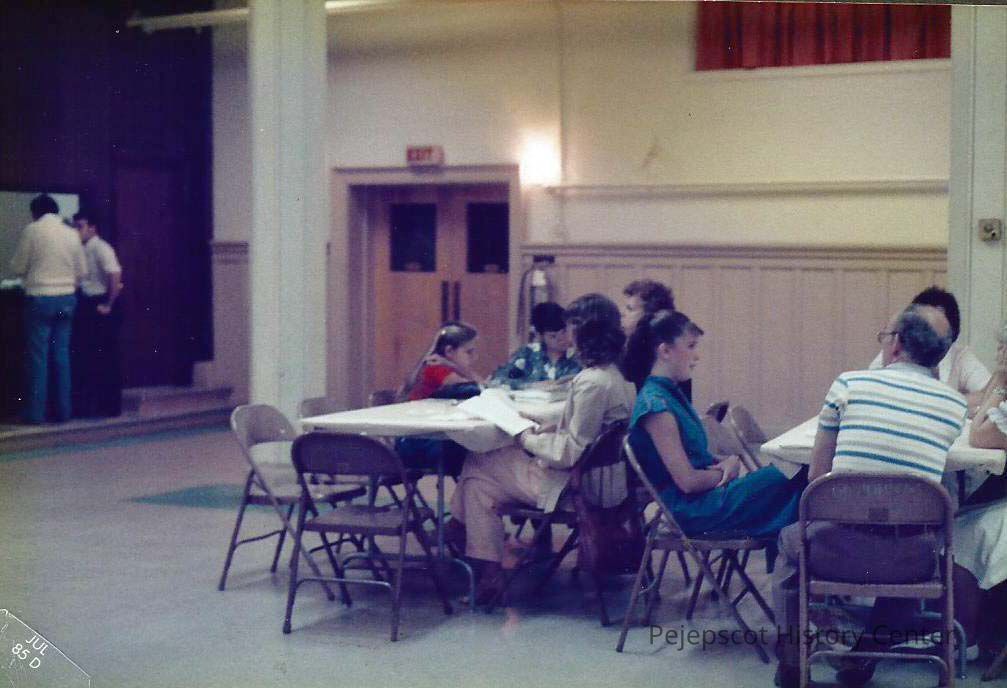 "Paul Bergeron & Omer Gagne at window, Shirely Valore Greenwell and daughter, mother Lauraine Valore, Christina Favreau Paradis, Doreen Derosier and her parents George & Shirley Derosier/.
